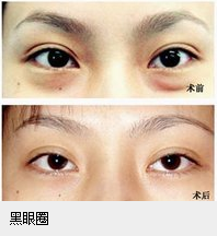 如果是眼皮老化松弛引起假性皮肤色素加深,则需作眼皮整形手术,切除过多的皮肤,黑眼圈的感觉就会改善了。此外有不少的年轻人由于遗传的关系,眼袋再二十多岁就很明显,连带造成黑眼圈的外观,此种情形需考虑经由结膜切开术将下眼皮内过多的脂肪去除,使眼袋消失于没有形,黑眼圈自然就不见了。有的人则是由于老化造成眼袋凸出,皮肤松弛黑眼圈相当明显!脸倦容,这就需要双管齐下,做下眼皮整形切除赘皮及脂肪才能有效改观。