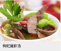 【组成】枸杞子50克,猪肝400克,生姜2片,枸杞猪肝汤