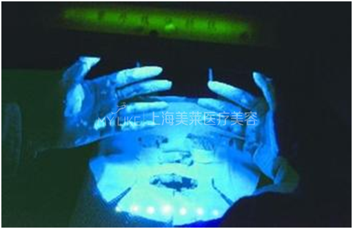 我们的记者跟随美莱医师到了医学实验室,亲眼验证了面膜在紫外线灯光照射下的恐怖现象。水光面膜上满满都是荧光粉,医师表示这类面膜长期用下去等同于毁容!