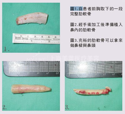 自体软骨:现在市面上炒作火热的当属自体软骨隆鼻了吧!自体软骨在整形科早有应用,而且整形领域直以来都有的原则就是,尽量选择自体组织作为植入物。但整形手术另原则就是少创伤原则,即对于类手术,尽量采用简单少创伤的方法。因此,有效以来,自体软骨,通常是自体肋软骨隆鼻都是应用在严重的鞍鼻畸形,鼻再造等严重鼻畸形中。因为,这手术要切取自体的组织,形成新的创伤。总结下,自体软骨隆鼻的优点:组织相容性好,不会发生排斥;缺点:切取肋软骨,形成新的创伤,肋部遗留瘢痕,第二,肋软骨在体内植入到新的位置后会发生变形,第三,外形雕刻受到假体大小的限制。
