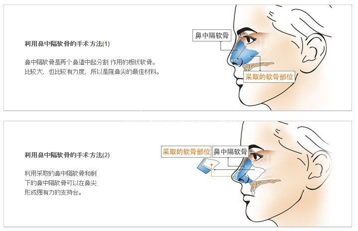 毫无疑问,软骨是自体组织,能与身体的相容性好,跟支撑鼻子形态的鼻软骨样属与软骨,把鼻尖下拉或抬高到需要的位置,而不会对组织产生点点刺激,而且有效符合生理学理论,适合用于隆鼻尖。